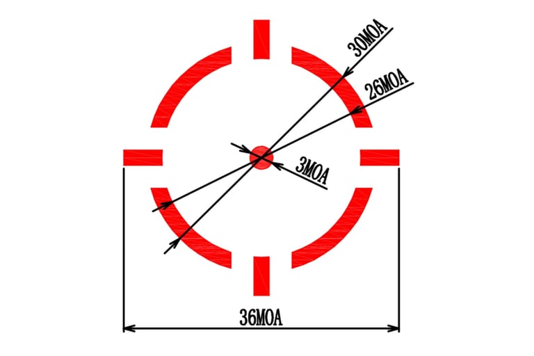 Single Dot 3MOA, Circle 30MOA, Cross 36MOA