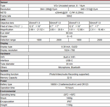The RaiderPro series combines the best cost-effectiveness and functionality in a compact optical sight.The series upgrade 2200 intergrated laser range finder from the original Raider series. The RaiderPro series focuses on the wide range of customer needs, it provides cost-effective 384@12μm infrared detector and high-performance 640@12μm detector solutions. The magnesium alloy body and silent, soft-touch buttons also provide excellent ergonomic design. The two included 18650 batteries are easy to replace, allowing you to use them outdoors for longer time. The 48mm eye relif and 1024×768 resolution AMOLED display provide a comfortable and detailed viewing hunting experience.